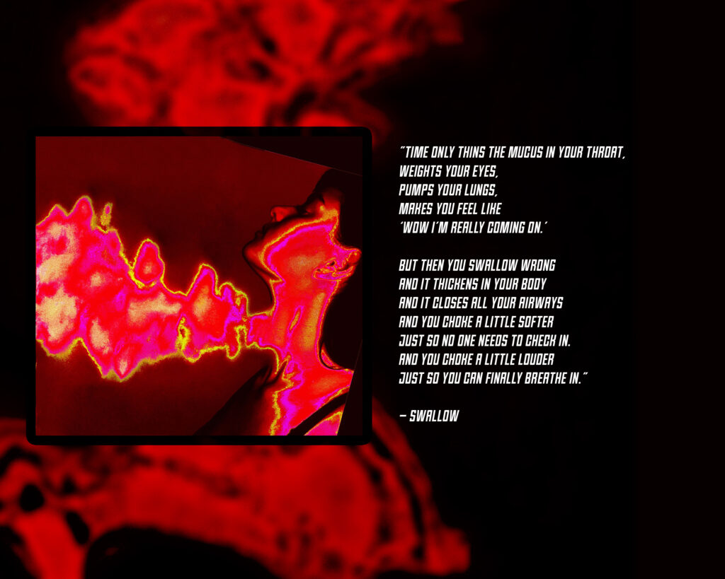 Cohesion and sense was not at the forefront of this project. In fact, planning connection between pieces would go against the very idea of feeling fragmented and disjointed. I let my feelings and thoughts run wild, and my hands on the screen even moreso. This is a project about unravelling, about letting go of control, and about seeing identity as something fluid, unstable, and constantly shifting; and that was the only thing I wanted reflected in my work.